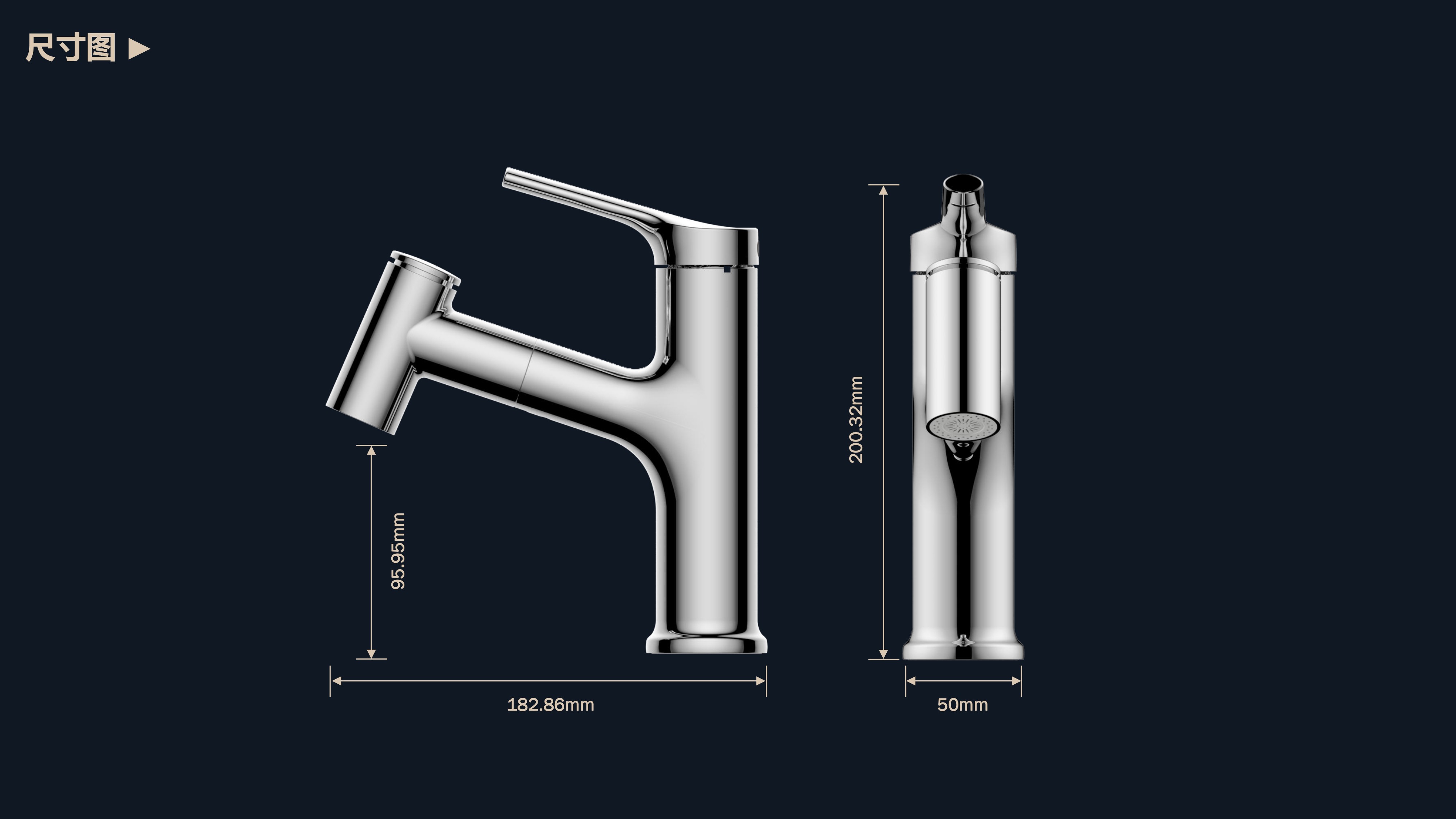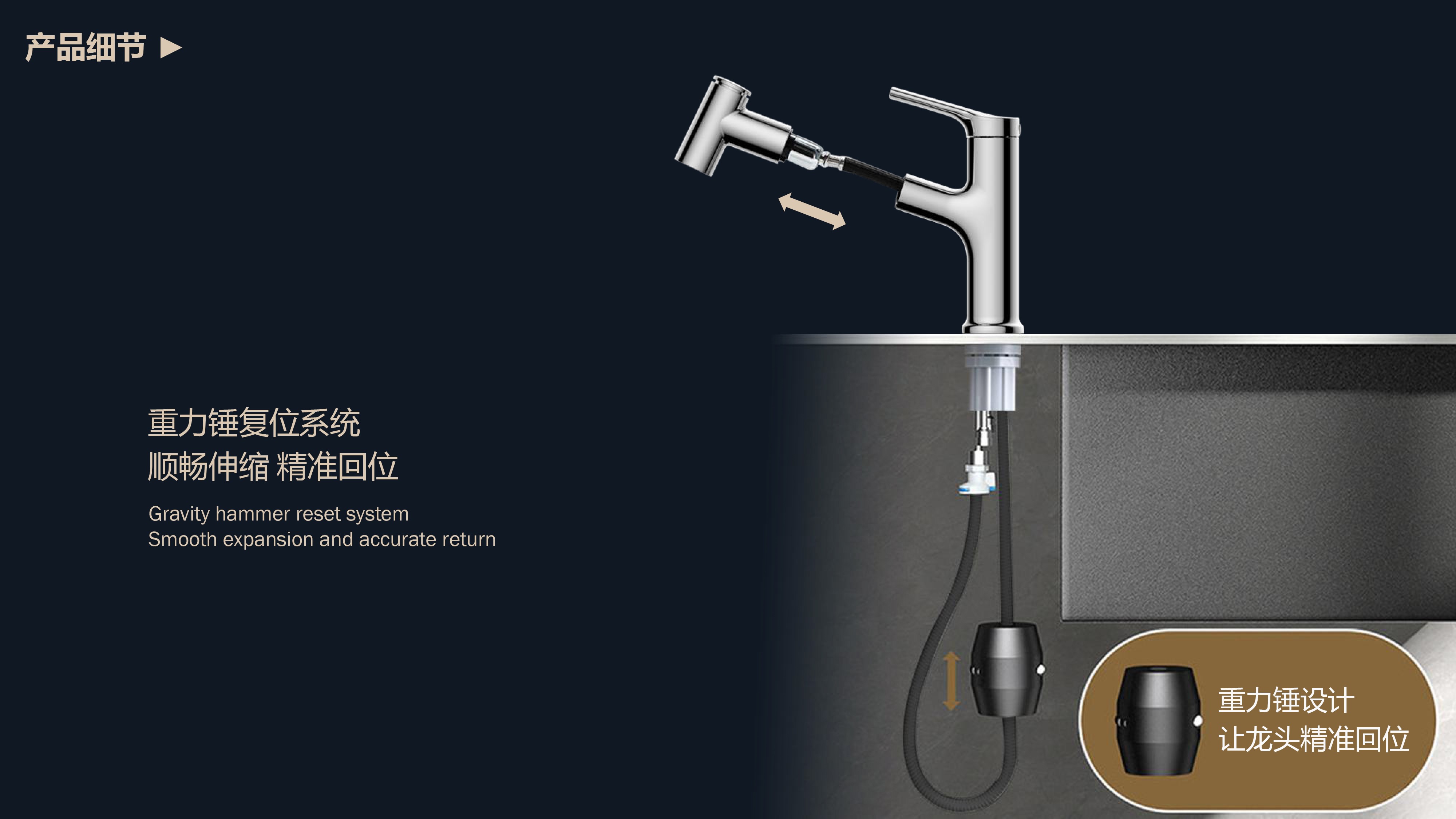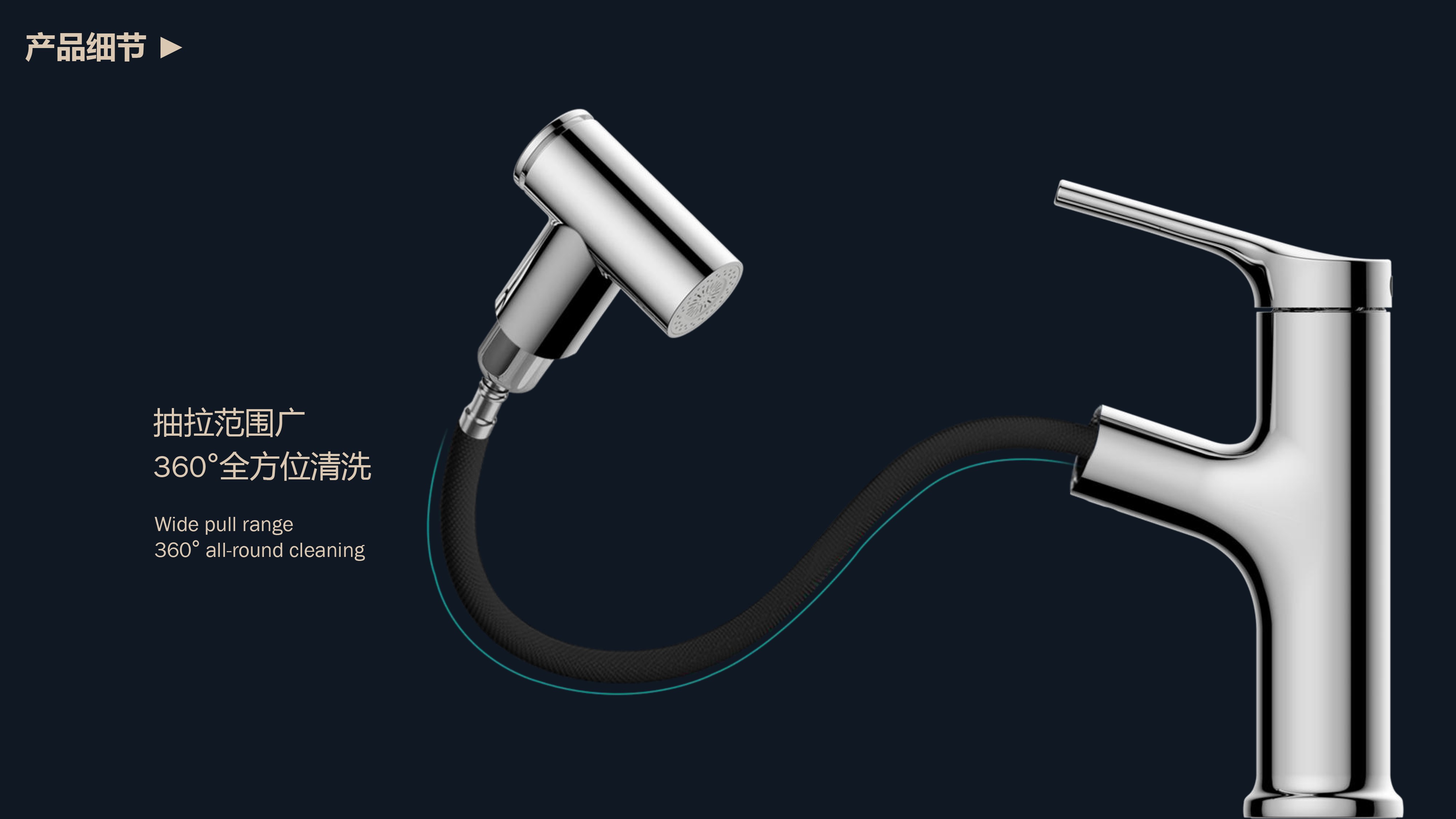 360°全方位抽拉清洗;微光龍頭,深夜使用不開大燈,不刺眼;日常洗頭利器,抽拉出水輕松洗;按壓切換兩功能水花;三種顏色LED燈光顯示水溫;重力錘復位設計,順暢伸縮,精準回位;無需工具,一推一擰10秒快裝