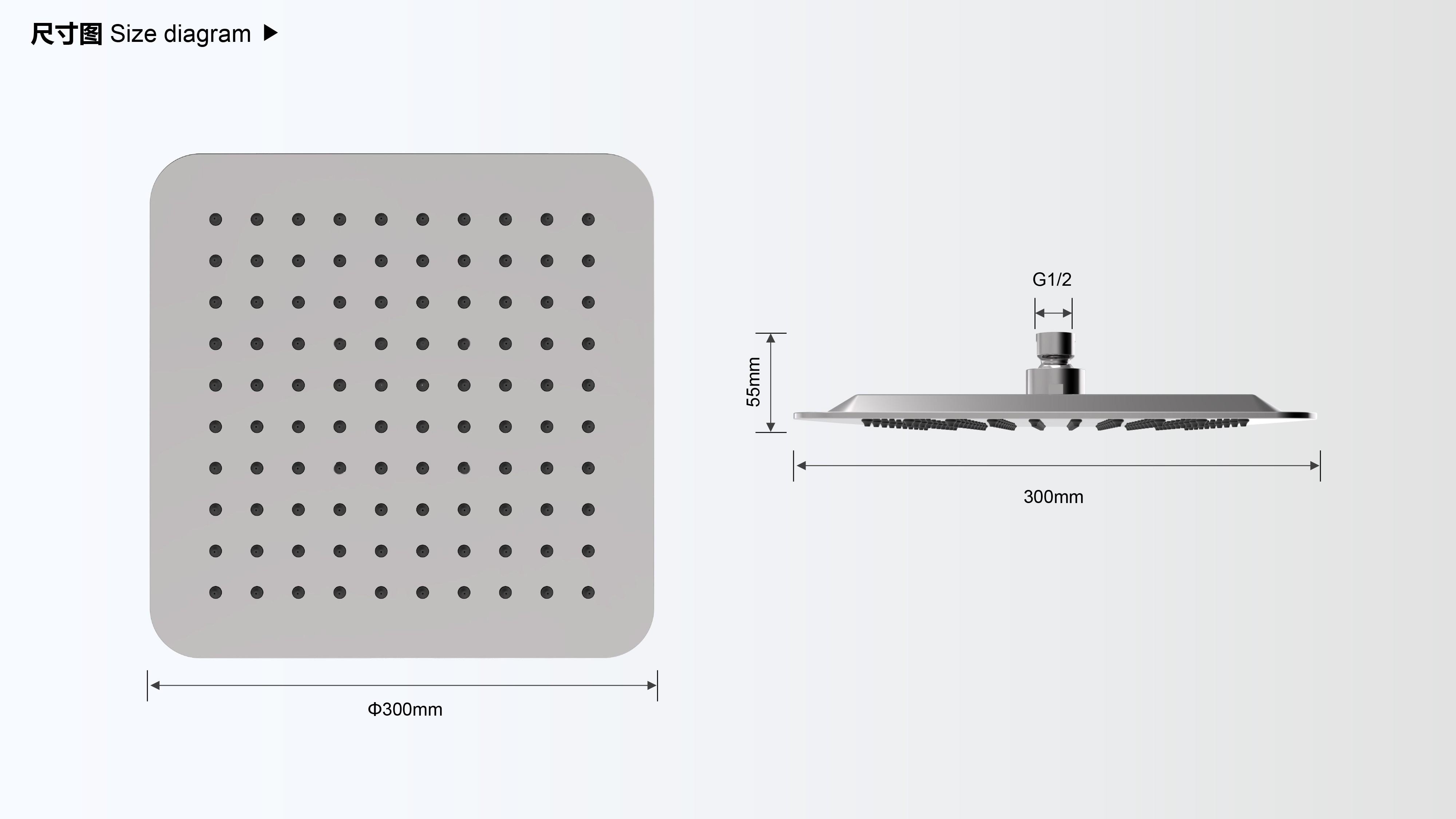 Size:300X300mm;CUPC/ WaterSense/ WRAS/ ACS認證