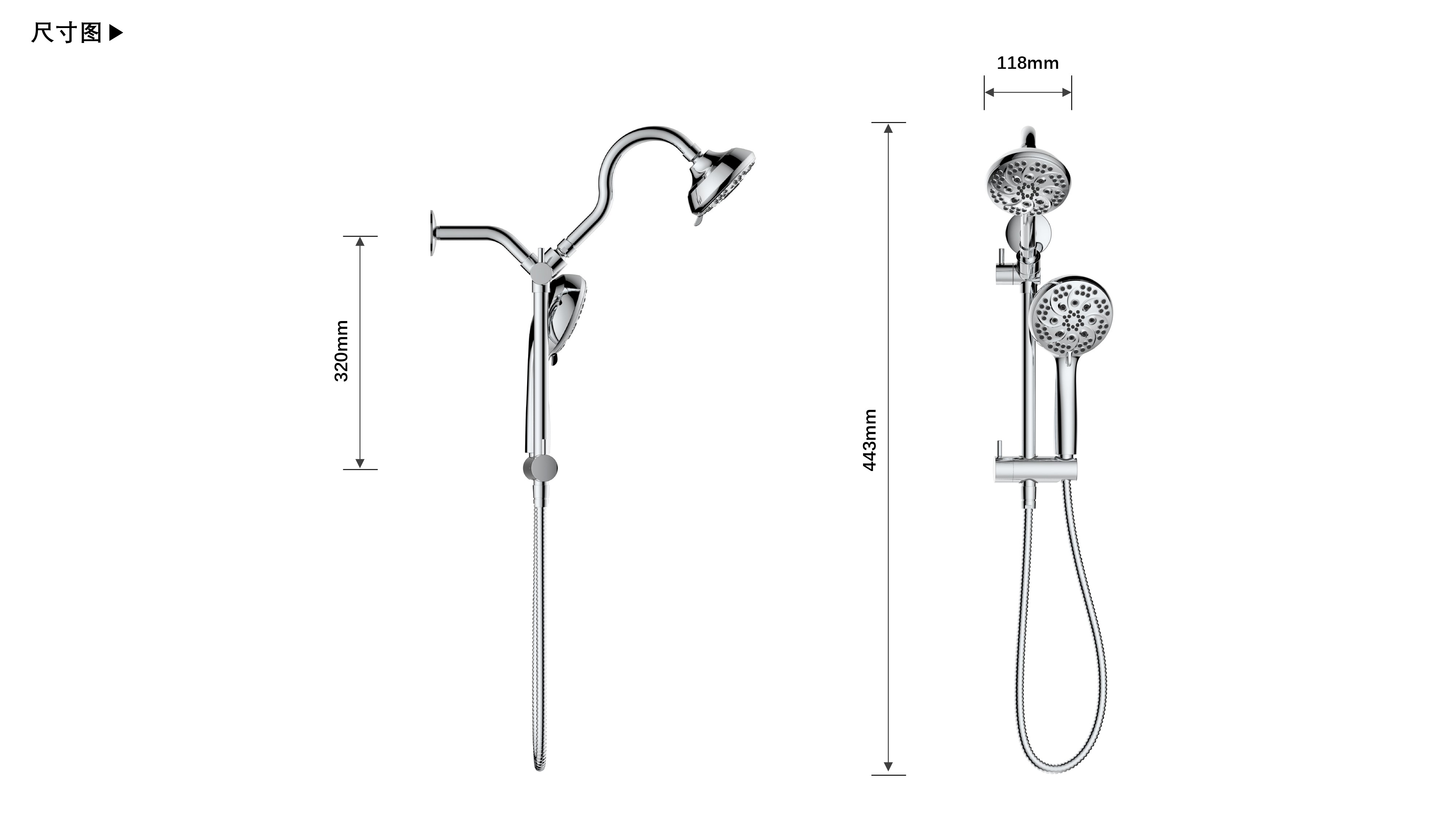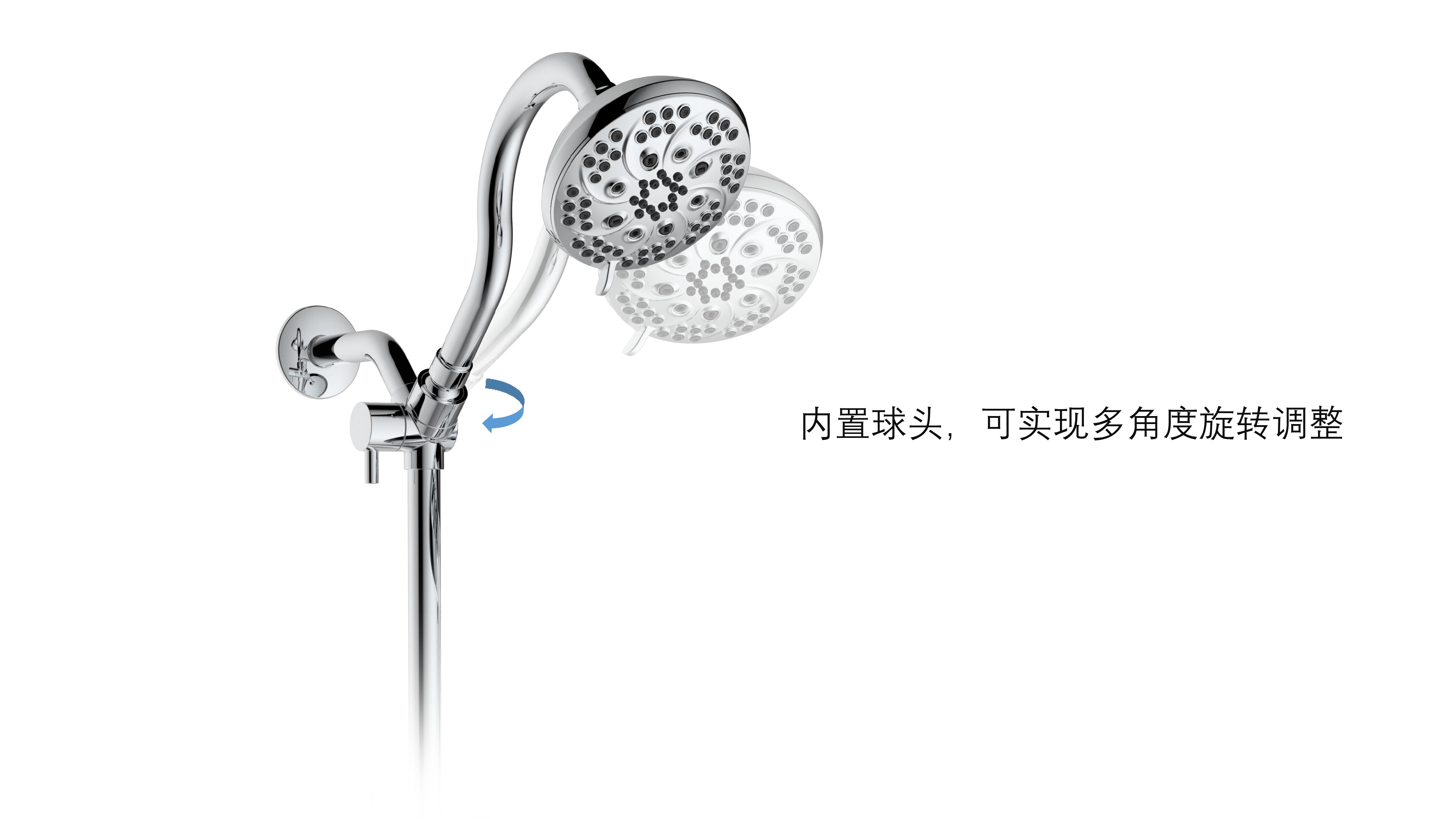 上出水彎管套裝;頂噴內(nèi)置球頭,可實現(xiàn)多角度旋轉(zhuǎn)調(diào)整;把手切換頂噴出水、花灑出水;轉(zhuǎn)動把手調(diào)節(jié)滑座高低;8功能出水花灑