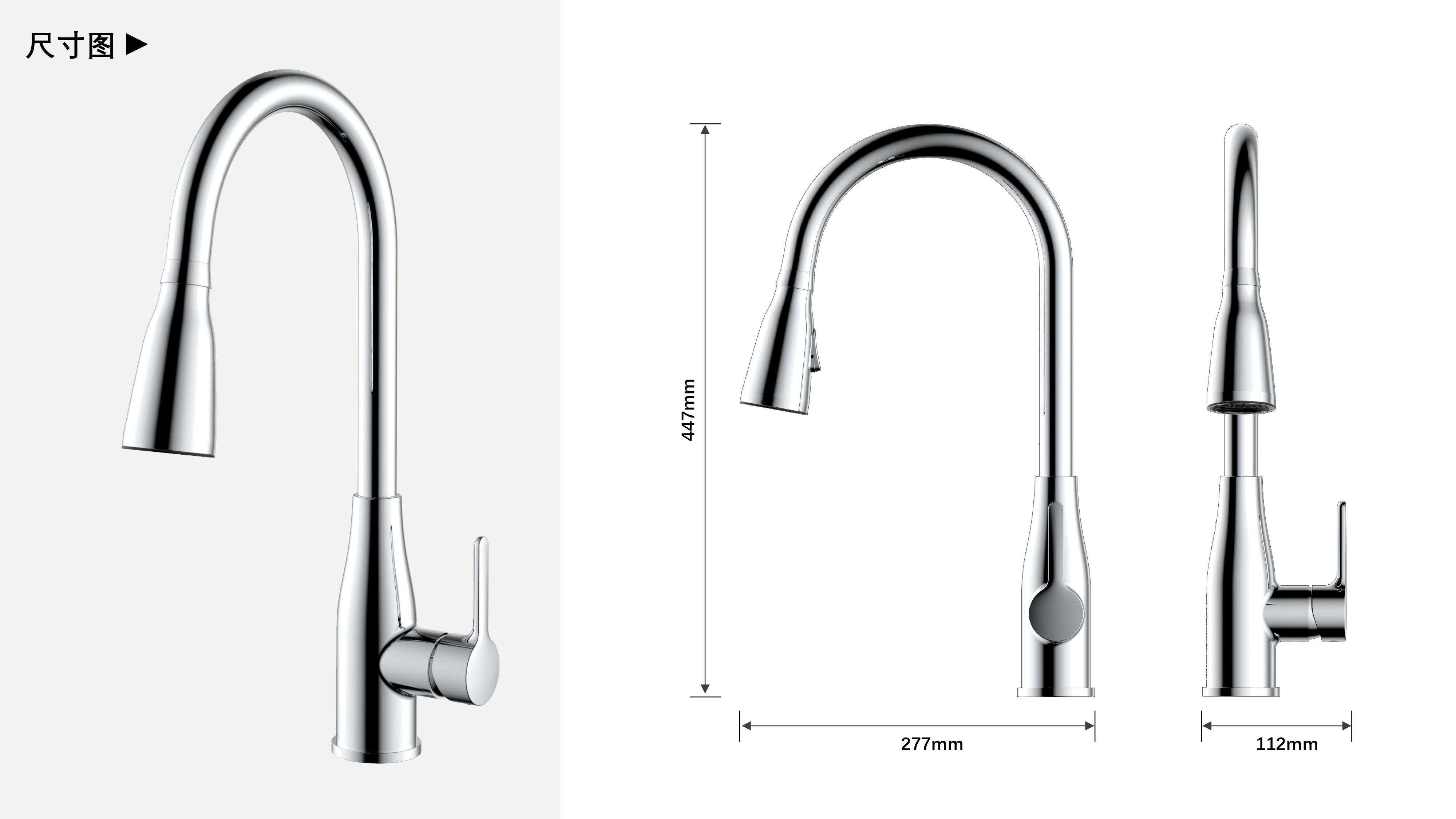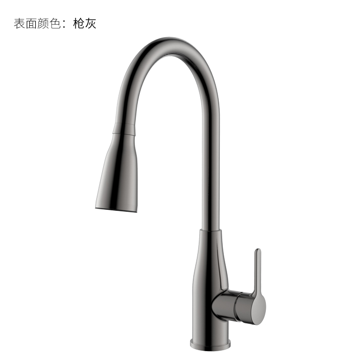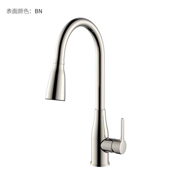 LED廚房抽拉龍頭;智能溫感芯片技術(shù),LED三種燈光顏色顯示溫水-涼水顯示藍色、溫水顯示綠色、熱水顯示紅色;抽拉頭多角度抽拉使用