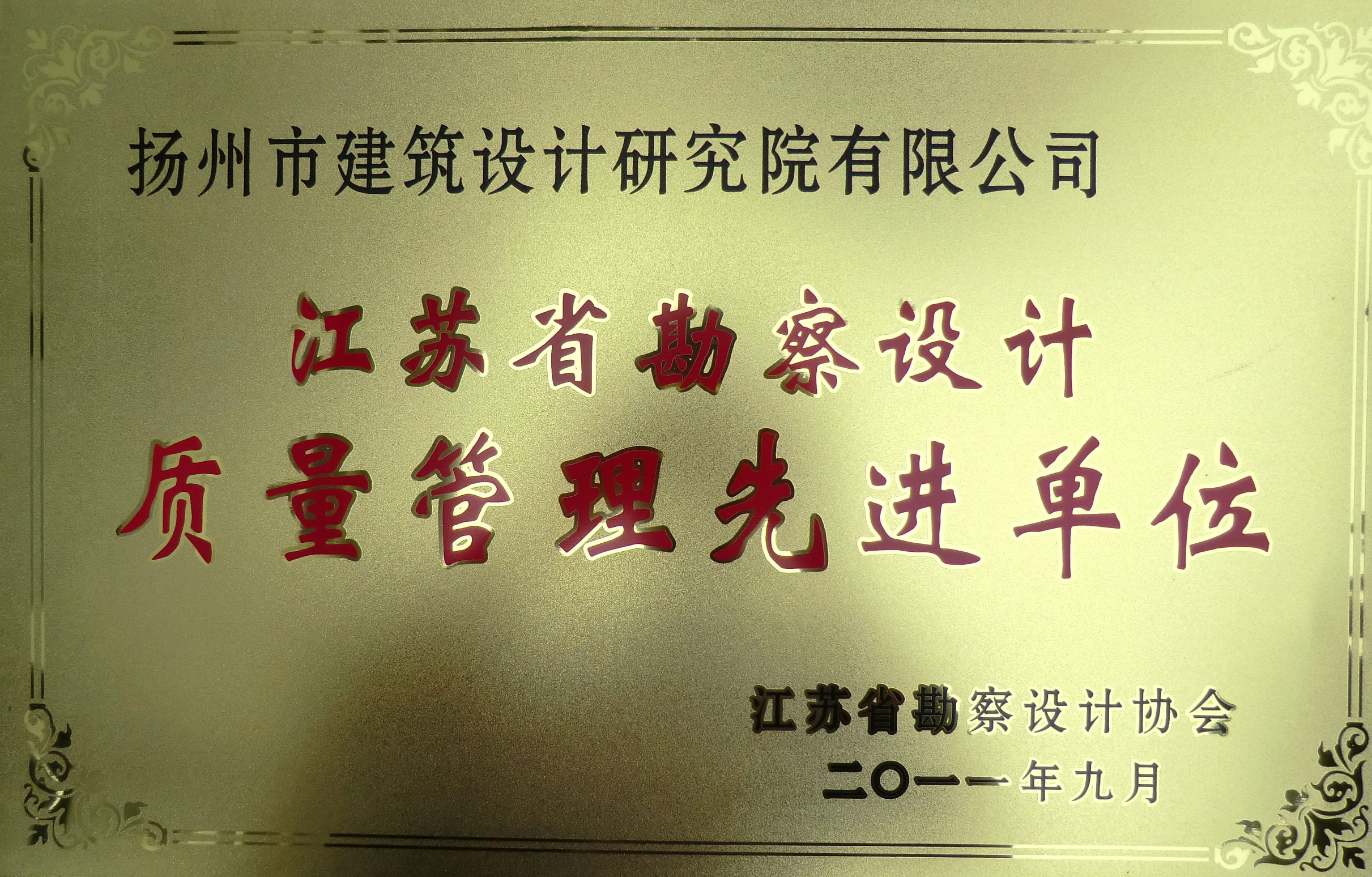 熱烈祝賀我院榮獲江蘇省勘察設(shè)計(jì)協(xié)會頒發(fā)的江蘇省勘察設(shè)計(jì)質(zhì)量管理先進(jìn)單位
