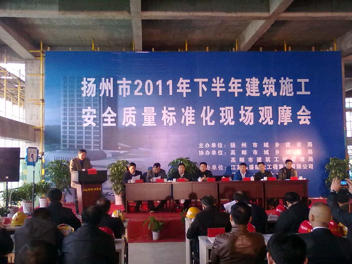 為進(jìn)一步推動全市建設(shè)工程施工現(xiàn)場安全生產(chǎn)、文明施工水平,2011年11月20日下午,揚(yáng)州市城鄉(xiāng)建設(shè)局在我司監(jiān)理的高郵城市商務(wù)大廈工程施工現(xiàn)場召開了揚(yáng)州市2011年下半年建筑施工安全質(zhì)量標(biāo)準(zhǔn)化現(xiàn)場觀摩會。院董事長、總監(jiān)理工程師潘長海在會上作了提高認(rèn)識,強(qiáng)化管理,創(chuàng)建安全、文明、和諧的標(biāo)化工作的監(jiān)理報告。